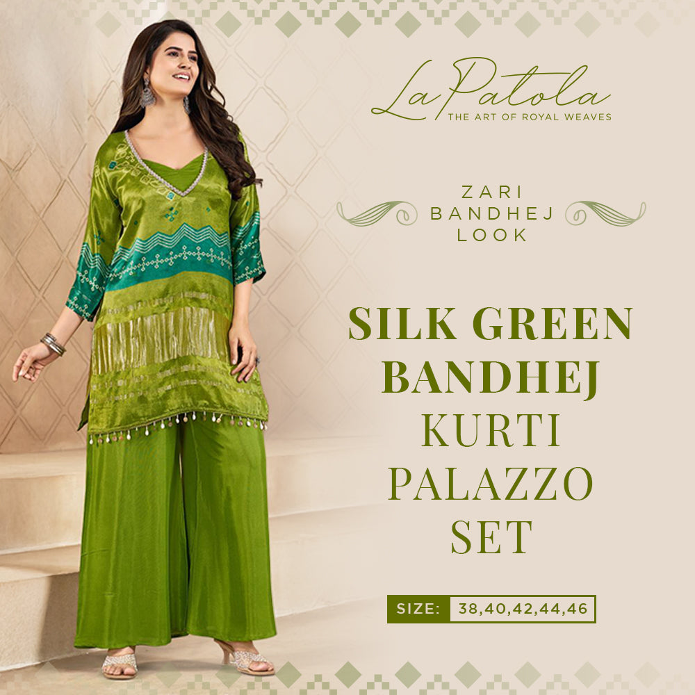 Green Twill Navratna Patola Silk Saree - Green
