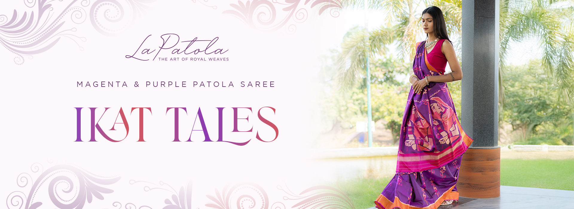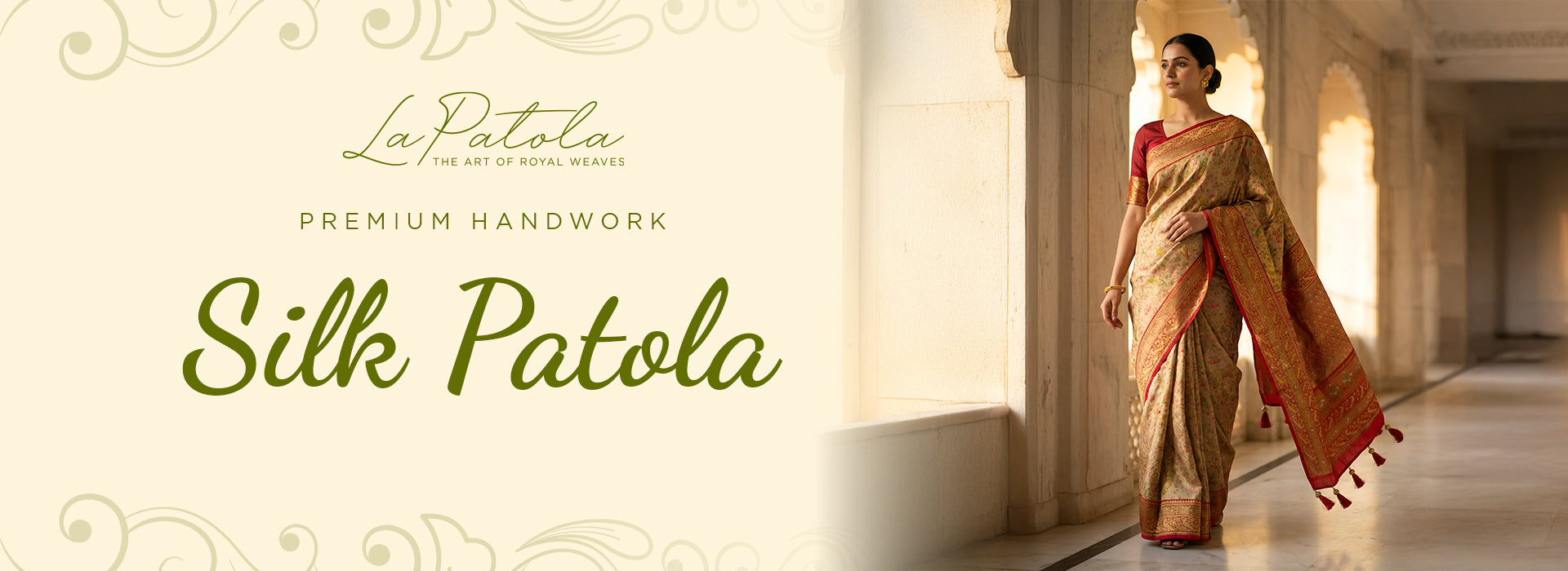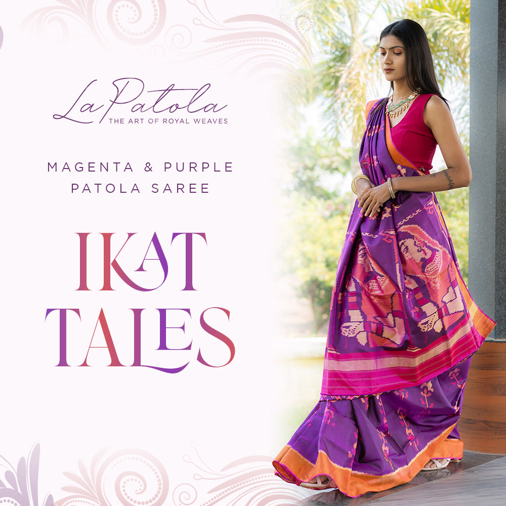 Cream and Pink Heritage Patola Silk Saree - Cream (soft ivory) base with pink accents