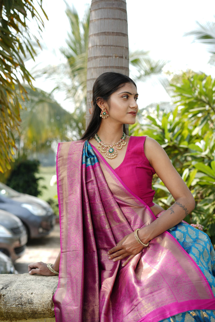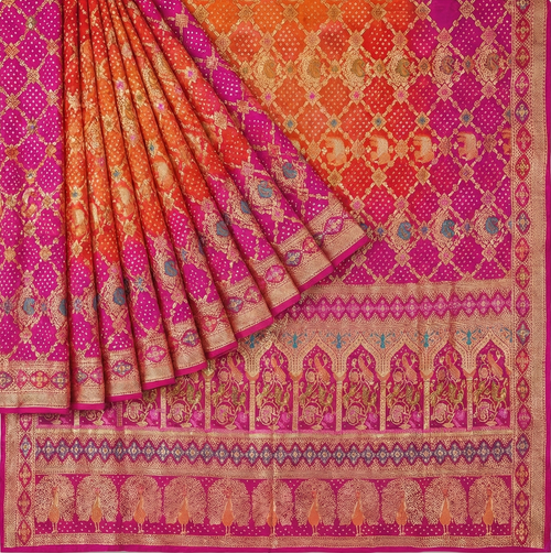 Zari Nakshi Chakri Pink Rai Dana Bandhej Saree