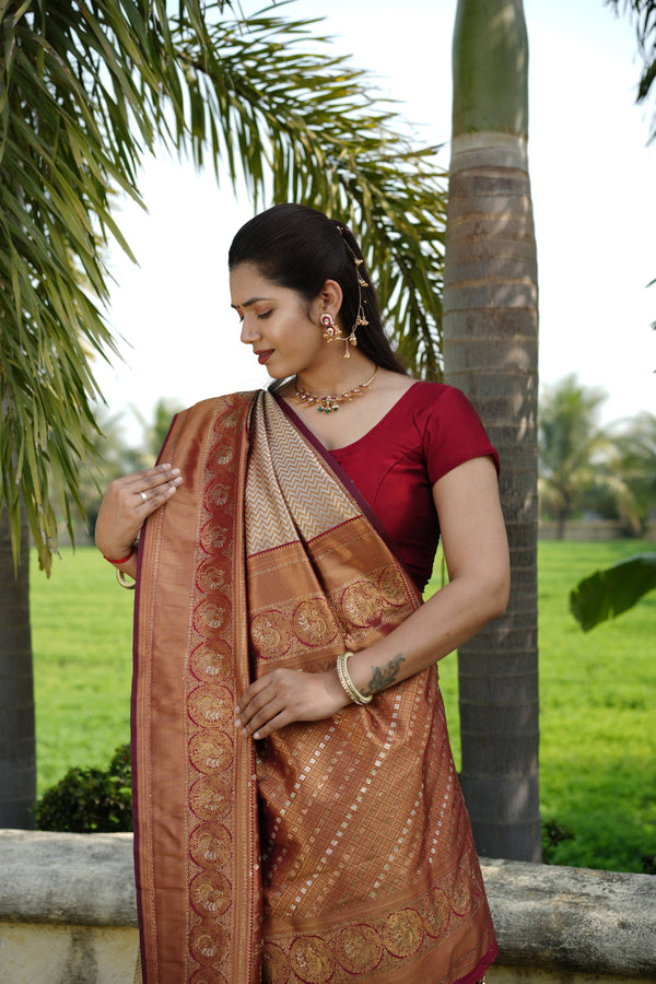 Silk Zari Border Pallu with Rose Buti Saree